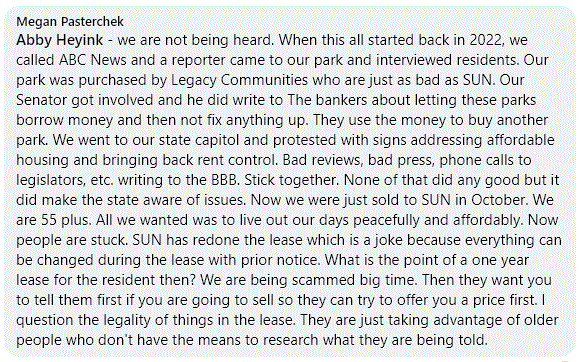 A Concerned Consumer's recent report about Sun Communities, from Facebook! |