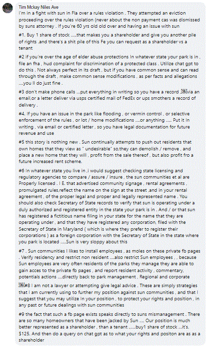 A Consumer's Tactical Recommendation re: Sun Communities and it's Financial Trap, from Facebook! |
